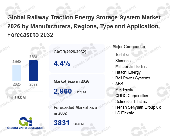 Global Info Research has recently published "Global Railway Traction Energy Storage System Market 2026 by Manufacturers, Regions, Type and Application, Forecast to 2032". This report systematically analyzes the global Railway Traction Energy Storage System market, providing multi-dimensional insights through type (AC Power Supply、 DC Power Supply), application (Train、 Metro、 Others), regional markets, and major manufacturers (Toshiba、 Siemens、 Mitsubishi Electric、 Hitachi Energy、 Rail Power Systems、 ABB、 Meidensha、 CRRC Corporation、 Schneider Electric、 Henan Senyuan Group Co、 LS Electric、 AEG Power Solutions), assessing the market status, trend evolution, and competitive landscape impact from 2021 to 2032.