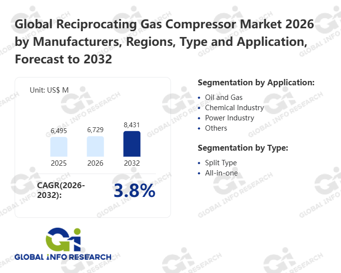Global Info Research has recently published "Global Reciprocating Gas Compressor Market 2026 by Manufacturers, Regions, Type and Application, Forecast to 2032". This report systematically analyzes the global Reciprocating Gas Compressor market, providing multi-dimensional insights through type (Split Type、 All-in-one), application (Oil and Gas、 Chemical Industry、 Power Industry、 Others), regional markets, and major manufacturers (Burckhardt Compression、 Ariel Corporation、 Baker Hughes、 Howden Group、 Siemens Energy、 NEUMAN & ESSER、 KOBELCO、 Howden、 Ingersoll Rand、 PSG、 IHI、 Atlas Copco Compressors LLC、 Mayekawa、 Corken、 Mitsui E&S、 Arrow Engine Corporation、 Mehrer Compression、 Denair Energy Saving Technology (Shanghai) PLC), assessing the market status, trend evolution, and competitive landscape impact from 2021 to 2032.