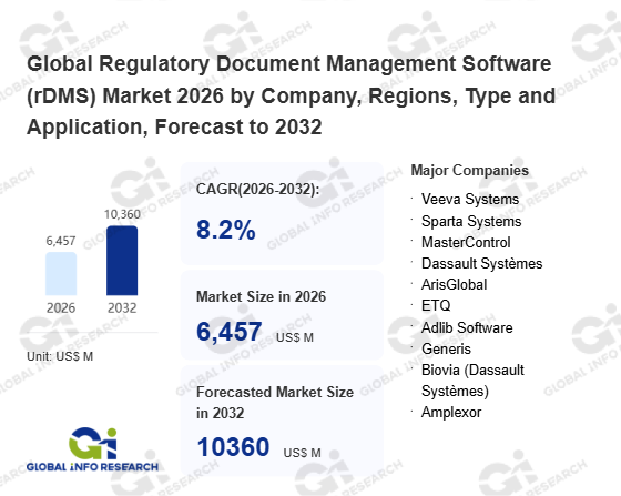 Global Info Research has recently published "Global Regulatory Document Management Software (rDMS) Market 2026 by Manufacturers, Regions, Type and Application, Forecast to 2032". This report systematically analyzes the global Regulatory Document Management Software (rDMS) market, providing multi-dimensional insights through type (Cloud Based、 On-Premises), application (Pharmaceuticals and Biotechnology、 Medical Device Industry、 Chemistry and Chemical Industry、 Food and Beverage Industry、 Energy and Utilities、 Other), regional markets, and major manufacturers (Veeva Systems、 Sparta Systems、 MasterControl、 Dassault Systèmes、 ArisGlobal、 ETQ、 Adlib Software、 Generis、 Biovia (Dassault Systèmes)、 Amplexor), assessing the market status, trend evolution, and competitive landscape impact from 2021 to 2032.