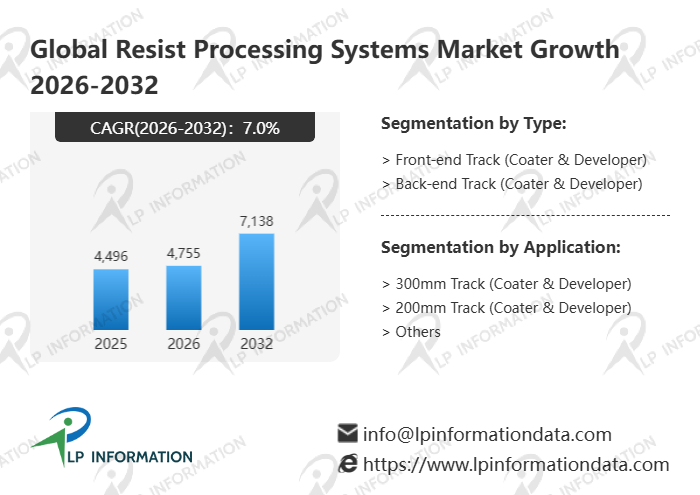 The global Resist Processing Systems market size is predicted to grow from US$ 4496 million in 2025 to US$ 7138 million in 2032; it is expected to grow at a CAGR of 7.0% from 2026 to 2032.