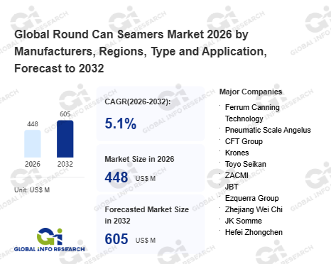Global Info Research has recently published "Global Round Can Seamers Market 2026 by Manufacturers, Regions, Type and Application, Forecast to 2032". This report systematically analyzes the global Round Can Seamers market, providing multi-dimensional insights through type (Fully Automatic、 Semi-automatic), application (Canned Food、 Canned Beverage、 Others), regional markets, and major manufacturers (Ferrum Canning Technology、 Pneumatic Scale Angelus、 CFT Group、 Krones、 Toyo Seikan、 ZACMI、 JBT、 Ezquerra Group、 Zhejiang Wei Chi、 JK Somme、 Hefei Zhongchen、 Swiss Can Machinery AG、 Hor Yang Machinery、 Montajes Conserveros de Galicia SL、 Simik Inc、 Bonicomm), assessing the market status, trend evolution, and competitive landscape impact from 2021 to 2032.