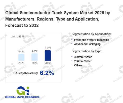 Global Info Research has recently published "Global Semiconductor Track System Market 2026 by Manufacturers, Regions, Type and Application, Forecast to 2032". This report systematically analyzes the current status, future trends (2021-2032), and competitive landscape of the global Semiconductor Track System market. It provides a quantitative analysis from the perspectives of type (300mm Wafer、 200mm Wafer、 Others), application (Front-end Wafer Processing、 Advanced Packaging), regional markets, and major manufacturers (TEL、 SEMES、 SCREEN、 SUSS MicroTec、 TAZMO、 Kingsemi Co.,Ltd、 Shenyang TDSEMI、 ACM Research (Shanghai)、 Suzhou Daion Technology、 Beijing Neweastech、 ELSTECH、 Ningbo ALLSEMI、 Shanghai Z & H Electronic Co., Ltd、 CETC-45、 Shenzhen KED Optical Electric Technology), comprehensively assessing market opportunities and competitive dynamics.