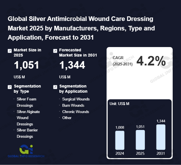 Global Info Research has recently published "Global Silver Antimicrobial Wound Care Dressing Market 2026 by Manufacturers, Regions, Type and Application, Forecast to 2032". This report systematically analyzes the global Silver Antimicrobial Wound Care Dressing market, providing multi-dimensional insights through type (Silver Foam Dressings、 Silver Alginate Wound Dressings、 Silver Barrier Dressings), application (Surgical Wounds、 Burn Wounds、 Chronic Wounds、 Other), regional markets, and major manufacturers (3M、 Smith & Nephew、 ConvaTec、 Molnlycke Health Care、 Coloplast、 Laboratories Urgo、 Acelity、 Medline、 Cardinal Health、 Hollister、 PolyMem、 Hartmann、 McKesson、 DermaRite Industries、 Derma Sciences、 Coloplast Corp、 Urgo Group、 Hartmann Group、 Hollister Incorporated), assessing the market status, trend evolution, and competitive landscape impact from 2021 to 2032.