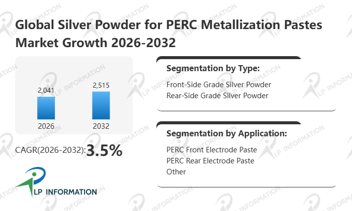 The global Silver Powder for PERC Metallization Pastes market size is predicted to grow from US$ 1972 million in 2025 to US$ 2515 million in 2032; it is expected to grow at a CAGR of 3.5% from 2026 to 2032.