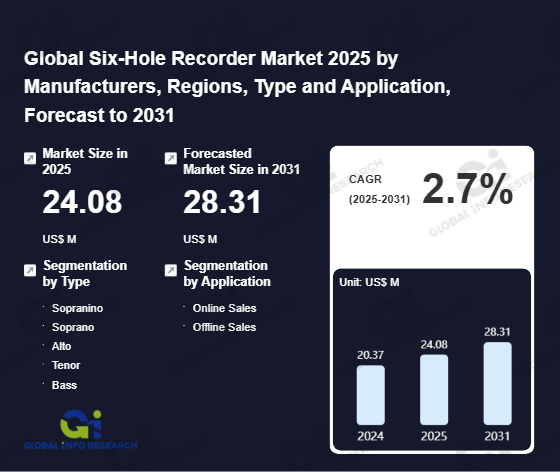 Global Info Research has recently published "Global Six-Hole Recorder Market 2026 by Manufacturers, Regions, Type and Application, Forecast to 2032". This report systematically analyzes the current status, future trends (2021-2032), and competitive landscape of the global Six-Hole Recorder market. It provides a quantitative analysis from the perspectives of type (Sopranino、 Soprano、 Alto、 Tenor、 Bass), application (Online Sales、 Offline Sales), regional markets, and major manufacturers (Yamaha、 Toyama Musical Instrument、 Suzuki、 Moeck Musikinstrumente + Verlag、 Mollenhauer、 Zen-On Music Company、 Küng Blockflöten、 Adrian Brown Recorders、 Takeyama Recorders), comprehensively assessing market opportunities and competitive dynamics.