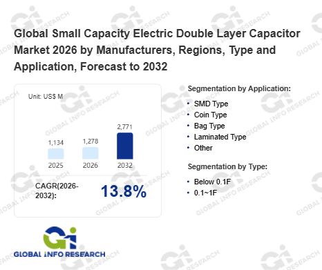 Global Info Research has recently published "Global Small Capacity Electric Double Layer Capacitor Market 2026 by Manufacturers, Regions, Type and Application, Forecast to 2032". This report systematically analyzes the global Small Capacity Electric Double Layer Capacitor market, providing multi-dimensional insights through type (Below 0.1F、 0.1~1F), application (SMD Type、 Coin Type、 Bag Type、 Laminated Type、 Other), regional markets, and major manufacturers (Maxwell、 Panasonic、 Ningbo CRRC New Energy Technology、 LS Mtron、 Nippon Chemi-Con、 AVX、 ELNA、 Supreme Power Solutions、 KEMET、 Samwha、 Jianghai Capacitor、 Man Yue Technology Holdings Limited、 Ioxus、 Jinzhou Kaimei Power、 Beijing HCC Energy、 Skeleton Technologies、 VINATech、 Cornell Dubilier Electronics), assessing the market status, trend evolution, and competitive landscape impact from 2021 to 2032.