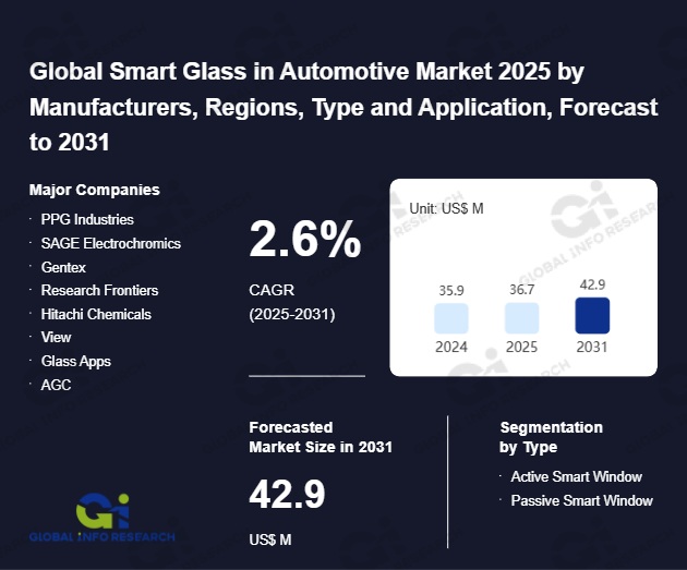 Global Info Research has recently published "Global Smart Glass in Automotive Market 2026 by Manufacturers, Regions, Type and Application, Forecast to 2032". This report systematically analyzes the global Smart Glass in Automotive market, providing multi-dimensional insights through type (Active Smart Window、 Passive Smart Window), application (Passenger Car、 Commercial Vehicle), regional markets, and major manufacturers (PPG Industries、 SAGE Electrochromics、 Gentex、 Research Frontiers、 Hitachi Chemicals、 View、 Glass Apps、 AGC、 SmartGlass International、 Scienstry、 RavenBrick、 Pleotint), assessing the market status, trend evolution, and competitive landscape impact from 2021 to 2032.