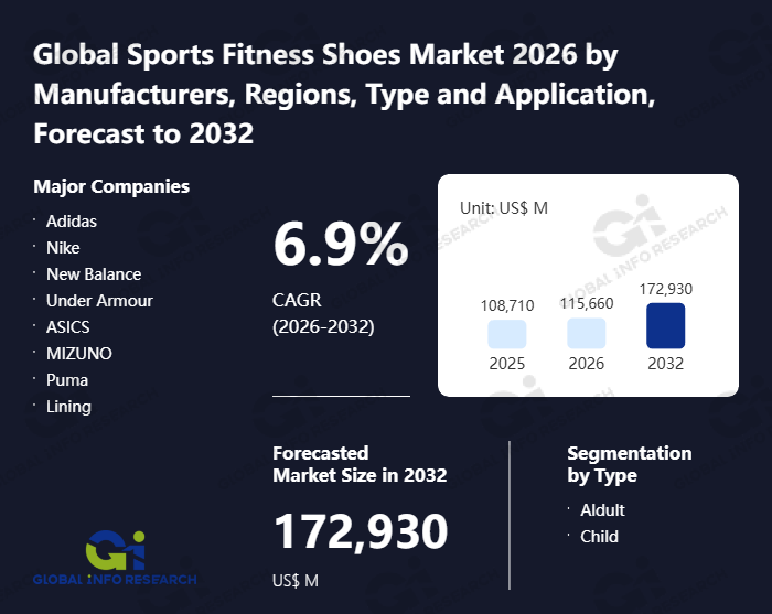 Global Info Research has recently published "Global Sports Fitness Shoes Market 2026 by Manufacturers, Regions, Type and Application, Forecast to 2032". This report systematically analyzes the current status, future trends (2021-2032), and competitive landscape of the global Sports Fitness Shoes market. It provides a quantitative analysis from the perspectives of type (Aldult、 Child), application (Online Sales、 Offline Sales), regional markets, and major manufacturers (Adidas、 Nike、 New Balance、 Under Armour、 ASICS、 MIZUNO、 Puma、 Lining、 Ecco、 Kswiss、 Skecher、 ANTA、 361°、 PEAK、 Guirenniao、 China Dongxiang、 Xtep), comprehensively assessing market opportunities and competitive dynamics.