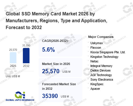 Global Info Research has recently published "Global SSD Memory Card Market 2026 by Manufacturers, Regions, Type and Application, Forecast to 2032". This report systematically analyzes the global SSD Memory Card market, providing multi-dimensional insights through type (SLC、 MLC、 TLC、 QLC), application (Consumer Electronics、 Automotive、 Industrial、 Data Center、 Healthcare、 Others), regional markets, and major manufacturers (Uskymax、 Flexxon、 Kioxia Singapore Pte. Ltd.、 Kingston Technology、 Netac、 Integral Memory、 Delkin Devices、 AGI Technology、 Sony Electronics、 KingSpec、 Apacer、 Angelbird、 Seagate、 Micron、 SanDisk、 Nextorage Corporation), assessing the market status, trend evolution, and competitive landscape impact from 2021 to 2032.