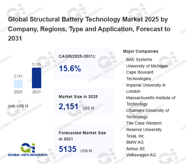 Global Info Research has recently published "Global Structural Battery Technology Market 2026 by Manufacturers, Regions, Type and Application, Forecast to 2032". This report systematically analyzes the current status, future trends (2021-2032), and competitive landscape of the global Structural Battery Technology market. It provides a quantitative analysis from the perspectives of type (Nickle-based Technology、 Lithium-based Technology), application (Automobile、 Industrial、 Residential、 Commercial、 Military、 Medical、 Others), regional markets, and major manufacturers (BAE Systems、 University of Michigan、 Cape Bouvard Technologies、 Imperial University in London、 Massachusetts Institute of Technology、 Chalmers University of Technology、 The Case Western Reserve University、 Tesla, Inc.、 BMW AG、 Airbus SE、 Volkswagen AG、 Samsung SDI Co., Ltd、 Saft Groupe S.A.、 Northvolt AB、 LG Chem Ltd、 Farasis Energy, Inc、 Solid Power, Inc.、 Cadenza Innovation, Inc、 Blue Solutions SA、 Oxis Energy Ltd、 Excellatron Solid State, LLC、 Amprius, Inc), comprehensively assessing market opportunities and competitive dynamics.