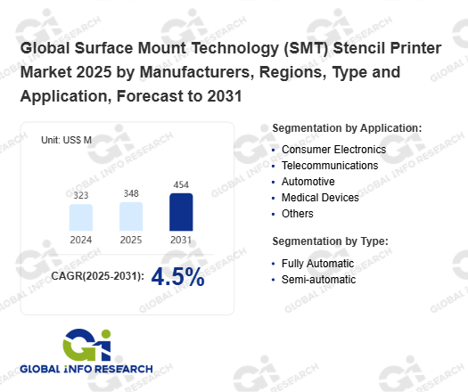 Global Info Research has recently published "Global Surface Mount Technology (SMT) Stencil Printer Market 2026 by Manufacturers, Regions, Type and Application, Forecast to 2032". This report systematically analyzes the global Surface Mount Technology (SMT) Stencil Printer market, providing multi-dimensional insights through type (Fully Automatic、 Semi-automatic), application (Consumer Electronics、 Telecommunications、 Automotive、 Medical Devices、 Others), regional markets, and major manufacturers (GKG、 ASM Pacific Technology、 ITW EAE、 ASYS Group、 Panasonic、 FUJI、 Suneast、 Yamaha Motor、 Mycronic、 Hanwha Precision Machinery、 Desen、 MINAMI、 Inotis、 HTGD Intelligent、 Kurtz Ersa、 HIT、 ESE、 Right Automation Equipment), assessing the market status, trend evolution, and competitive landscape impact from 2021 to 2032.