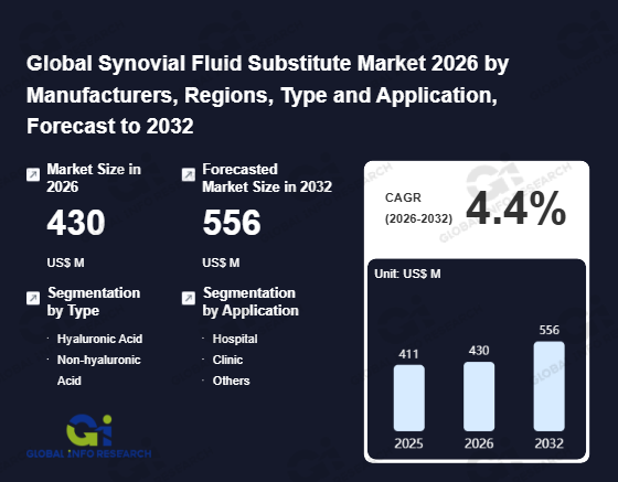 Global Info Research has recently published "Global Synovial Fluid Substitute Market 2026 by Manufacturers, Regions, Type and Application, Forecast to 2032". This report systematically analyzes the current status, future trends (2021-2032), and competitive landscape of the global Synovial Fluid Substitute market. It provides a quantitative analysis from the perspectives of type (Hyaluronic Acid、 Non-hyaluronic Acid), application (Hospital、 Clinic、 Others), regional markets, and major manufacturers (Cgbio、 TRB Chemedica International、 Anika Therapeutics、 Bioventus、 Zimmer Biomet、 Smith & Nephew、 Lifecore Biomedical、 Fidia Farmaceutici、 IBSA Institut Biochimique、 Sanofi、 Contipro、 Matex、 Hanmi Pharmaceutical、 Seikagaku Corporation、 Kaken Pharmaceutical、 Chugai Pharmaceutical、 LG Chem), comprehensively assessing market opportunities and competitive dynamics.