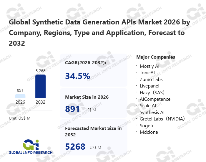 This guide aims to help you systematically interpret "Global Synthetic Data Generation APIs Market 2026 by Manufacturers, Regions, Type and Application, Forecast to 2032". The report comprehensively analyzes global Synthetic Data Generation APIs market trends, competitive landscape, and growth opportunities from 2021 to 2032, covering multi-dimensional data including type, application, and regional markets. Whether you are a market strategist, product manager, investment analyst, or industry researcher, this guide will help you quickly locate key information and transform Synthetic Data Generation APIs report data into actionable business insights.