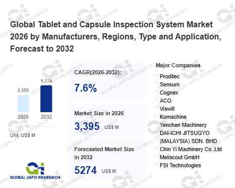 Global Info Research has recently published "Global Tablet and Capsule Inspection System Market 2026 by Manufacturers, Regions, Type and Application, Forecast to 2032". This report systematically analyzes the global Tablet and Capsule Inspection System market, providing multi-dimensional insights through type (Visual Inspection System、 Metal/Foreign Object Inspection System、 Weight Inspection and Sorting System), application (Pharmaceutical Manufacturing、 Pharmaceutical Packaging、 Others), regional markets, and major manufacturers (Proditec、 Sensum、 Cognex、 ACG、 Viswill、 Komachine、 Yenchen Machinery、 DAI-ICHI JITSUGYO (MALAYSIA) SDN. BHD、 Chin Yi Machinery Co.,Ltd、 Meliscout GmbH、 FSI Technologies、 Accura Pharmaquip、 Sun Teknovation、 NEVIL、 FITOW、 Jekson Vision), assessing the market status, trend evolution, and competitive landscape impact from 2021 to 2032.