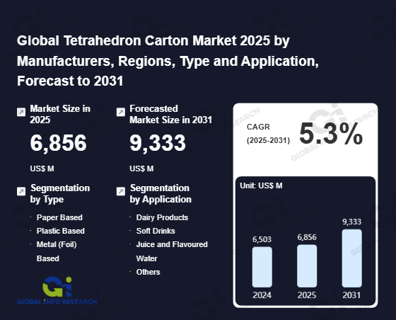 Global Info Research has recently published "Global Tetrahedron Carton Market 2026 by Manufacturers, Regions, Type and Application, Forecast to 2032". This report systematically analyzes the global Tetrahedron Carton market, providing multi-dimensional insights through type (Paper Based、 Plastic Based、 Metal (Foil) Based), application (Dairy Products、 Soft Drinks、 Juice and Flavoured Water、 Others), regional markets, and major manufacturers (TetraPak international S.A、 Elopak AS、 ProAmpac Intermediate Inc、 Stora Enso Oyj、 Asepto、 Lampak、 Pattrus、 Zekun Packaging、 Viveprinting、 Golden West Packaging Group、 Great View Aseptic P[ackaging、 Evergreen Packaging、 Smurfit Kappa、 Amcor Plc、 Huhtamaki Oyj、 SIG Group、 Nippon Paper insutries、 Mondi Group、 Krones AG、 Crown Van Gelder), assessing the market status, trend evolution, and competitive landscape impact from 2021 to 2032.