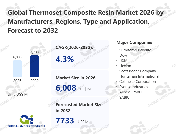 Global Info Research has recently published "Global Thermoset Composite Resin Market 2026 by Manufacturers, Regions, Type and Application, Forecast to 2032". This report systematically analyzes the global Thermoset Composite Resin market, providing multi-dimensional insights through type (Thermoset Composite Resin、 Thermoplastic Composite Resin), application (Marine、 Aerospace and Defense、 Construction and Infrastructure、 Automotive and Transportation、 Electricals and Electronics、 Pipes and Tanks、 Wind Energy), regional markets, and major manufacturers (Sumitomo Bakelite、 Dow、 DSM、 Hexion、 Scott Bader Company、 Huntsman International、 Celanese Corporation、 Evonik Industries、 Allnex GmbH、 SABIC), assessing the market status, trend evolution, and competitive landscape impact from 2021 to 2032.