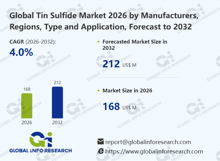 Global Info Research has recently published "Global Tin Sulfide Market 2026 by Manufacturers, Regions, Type and Application, Forecast to 2032". This report systematically analyzes the current status, future trends (2021-2032), and competitive landscape of the global Tin Sulfide market. It provides a quantitative analysis from the perspectives of type (SnS、 SnS2、 Sn2S3), application (Solar Energy、 Ceramics、 Chemicals、 Electronics、 Others), regional markets, and major manufacturers (Nihon Seiko、 Stanford Advanced Materials (SAM)、 Tokyo Chemical Industry、 FUJIFILM Wako、 TIB Chemicals、 Keiron Chemicals、 Jainson Chemicals、 Muby Chemicals、 Ossila、 Lonwin、 Ocean Chemical、 FUNCMATER、 Ereztech、 ALB Materials、 American Elements), comprehensively assessing market opportunities and competitive dynamics.