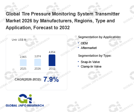 Global Info Research has recently published "Global Tire Pressure Monitoring System Transmitter Market 2026 by Manufacturers, Regions, Type and Application, Forecast to 2032". This report systematically analyzes the global Tire Pressure Monitoring System Transmitter market, providing multi-dimensional insights through type (Snap-In Valve、 Clamp-In Valve), application (OEM、 Aftermarket), regional markets, and major manufacturers (Schrader、 Baolong、 Pacific Industrial、 Continental AG、 Huf Group、 TRW、 Sysgration、 Dias Automotive Electronic Systems、 Sate、 Steelmate), assessing the market status, trend evolution, and competitive landscape impact from 2021 to 2032.