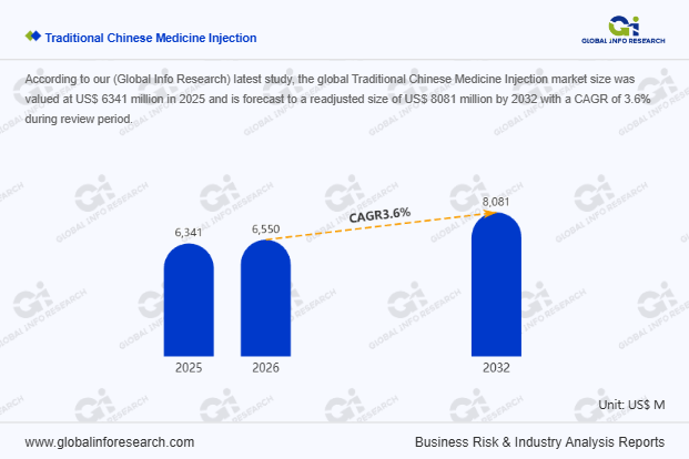 Global Info Research has recently published "Global Traditional Chinese Medicine Injection Market 2026 by Manufacturers, Regions, Type and Application, Forecast to 2032". This report systematically analyzes the global Traditional Chinese Medicine Injection market, providing multi-dimensional insights through type (Detoxification、 Cardiovascular Disease Medication、 Cerebrovascular Disease Medication、 Anti-tumor Drugs、 Other), application (Hospitals、 Clinics), regional markets, and major manufacturers (Green Valley Pharma、 Changbaishan Pharmaceutical、 Jemincare、 Qingfeng Pharmaceutical Group、 Buchang Pharmaceutical、 Livzon、 ZBD Pharmaceutical、 Chase Sun Pharmaceutical、 Wuzhou Pharmaceutical、 Kanion Pharmaceutical、 Harbin Pharmaceutical Group、 Fusen Pharmaceutical、 Linbao Pharmaceutical、 Shineway Pharmaceutical、 Shanghai Kaibao Pharmaceutical、 Shanxi Zhendong Pharmaceutical、 Mudanjiang Youbo Pharmaceutical、 Xi'an Shijishengkang Pharmaceutical、 China Resources Sanjiu Medical & Pharmaceutical、 Tasly Pharmaceuticals、 Dali Pharmaceutical、 CONBA、 Yunnan Biovalley Pharmaceutical、 Shanghai Pharmaceuticals Holding、 Jilin Jian Yisheng Pharmaceutical、 Guizhou Yibai Pharmaceutical、 CSPC Pharmaceutical Group、 Yabao Pharmaceutical、 Kunming Longjin Pharmaceutical、 Yunnan Baiyao), assessing the market status, trend evolution, and competitive landscape impact from 2021 to 2032.