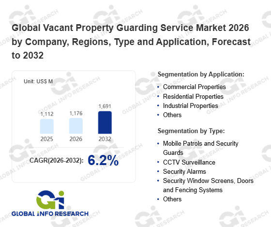 Global Info Research has recently published "Global Vacant Property Guarding Service Market 2026 by Manufacturers, Regions, Type and Application, Forecast to 2032". This report systematically analyzes the current status, future trends (2021-2032), and competitive landscape of the global Vacant Property Guarding Service market. It provides a quantitative analysis from the perspectives of type (Mobile Patrols and Security Guards、 CCTV Surveillance、 Security Alarms、 Security Window Screens, Doors and Fencing Systems、 Others), application (Commercial Properties、 Residential Properties、 Industrial Properties、 Others), regional markets, and major manufacturers (Orbis Protect、 Clearway、 Live-in Guardians、 The VPS Group、 Ad Hoc、 Triton Security & Facilities Management Limited.、 The Keyholding Company、 Prime Secure Systems、 Eagle Security Services、 Secure Site (UK) Limited、 Unparalleled Security、 Marpol Security、 Twin City Security、 MEC Security、 MS Webb、 Shield Facilities), comprehensively assessing market opportunities and competitive dynamics.