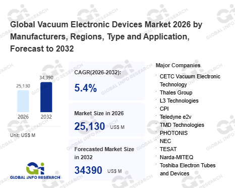 This guide aims to help you systematically interpret "Global Vacuum Electronic Devices Market 2026 by Manufacturers, Regions, Type and Application, Forecast to 2032". The report comprehensively analyzes global Vacuum Electronic Devices market trends, competitive landscape, and growth opportunities from 2021 to 2032, covering multi-dimensional data including type, application, and regional markets. Whether you are a market strategist, product manager, investment analyst, or industry researcher, this guide will help you quickly locate key information and transform Vacuum Electronic Devices report data into actionable business insights.