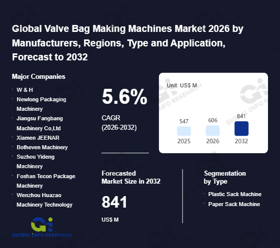 Global Info Research has recently published "Global Valve Bag Making Machines Market 2026 by Manufacturers, Regions, Type and Application, Forecast to 2032". This report systematically analyzes the current status, future trends (2021-2032), and competitive landscape of the global Valve Bag Making Machines market. It provides a quantitative analysis from the perspectives of type (Plastic Sack Machine、 Paper Sack Machine), application (Food、 Chemicals、 Pharmaceuticals、 Building Materials、 Agriculture、 Others), regional markets, and major manufacturers (W & H、 Newlong Packaging Machinery、 Jiangsu Fangbang Machinery Co,Ltd、 Xiamen JEENAR、 Botheven Machinery、 Suzhou Yideng Machinery、 Foshan Tecon Package Machinery、 Wenzhou Huazao Machinery Technology、 Wenzhou Guanghua Plastic Machinery Manufacture、 Master Bag), comprehensively assessing market opportunities and competitive dynamics.