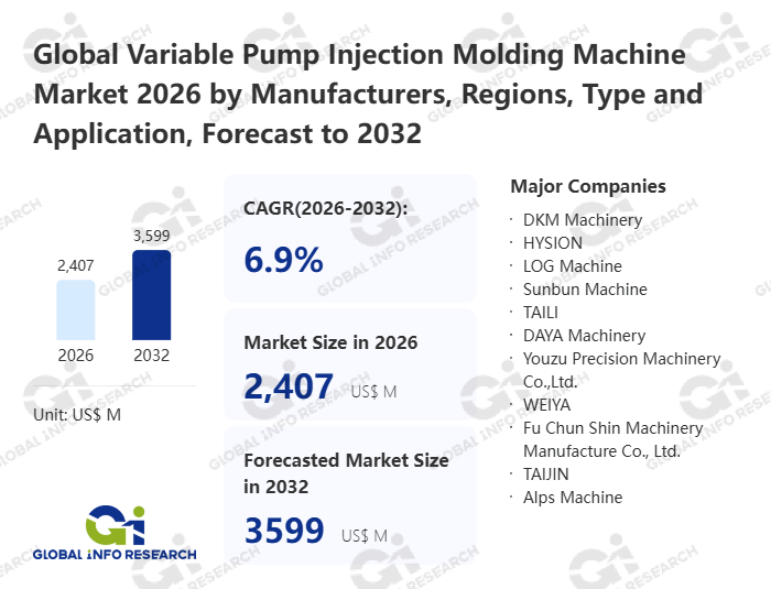 Global Info Research has recently published "Global Variable Pump Injection Molding Machine Market 2026 by Manufacturers, Regions, Type and Application, Forecast to 2032". This report systematically analyzes the current status, future trends (2021-2032), and competitive landscape of the global Variable Pump Injection Molding Machine market. It provides a quantitative analysis from the perspectives of type (Clamping Force (Tonnage): < 100 T、 Clamping Force (Tonnage): 100 - 500 T、 Clamping Force (Tonnage): 500 - 2000 T、 Others), application (Electronics、 Medical、 Packaging、 Others), regional markets, and major manufacturers (DKM Machinery、 HYSION、 LOG Machine、 Sunbun Machine、 TAILI、 DAYA Machinery、 Youzu Precision Machinery Co.,Ltd.、 WEIYA、 Fu Chun Shin Machinery Manufacture Co., Ltd.、 TAIJIN、 Alps Machine), comprehensively assessing market opportunities and competitive dynamics.