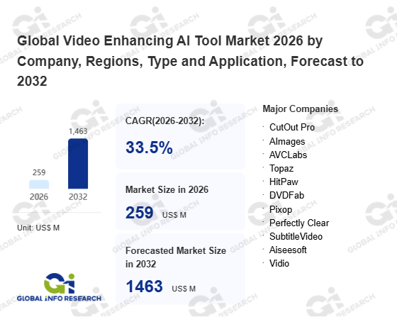 Global Info Research has recently published "Global Video Enhancing AI Tool Market 2026 by Manufacturers, Regions, Type and Application, Forecast to 2032". This report systematically analyzes the global Video Enhancing AI Tool market, providing multi-dimensional insights through type (Cloud-based、 On-premises), application (Large Enterprises、 SMEs), regional markets, and major manufacturers (CutOut Pro、 AImages、 AVCLabs、 Topaz、 HitPaw、 DVDFab、 Pixop、 Perfectly Clear、 SubtitleVideo、 Aiseesoft、 Vidio、 Media.io、 ClonerAlliance、 Veed、 Wondershare、 Lightworks、 Clipchamp), assessing the market status, trend evolution, and competitive landscape impact from 2021 to 2032.