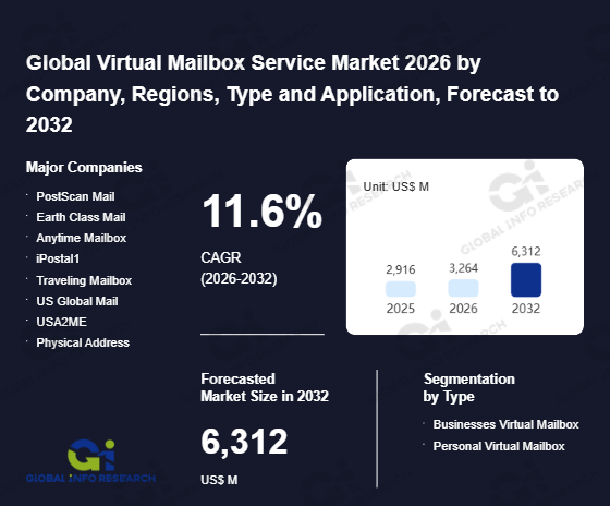Global Info Research has recently published "Global Virtual Mailbox Service Market 2026 by Manufacturers, Regions, Type and Application, Forecast to 2032". This report systematically analyzes the global Virtual Mailbox Service market, providing multi-dimensional insights through type (Businesses Virtual Mailbox、 Personal Virtual Mailbox), application (Business、 Travelers、 Expats、 Government Agencies), regional markets, and major manufacturers (PostScan Mail、 Earth Class Mail、 Anytime Mailbox、 iPostal1、 Traveling Mailbox、 US Global Mail、 USA2ME、 Physical Address、 Virtual Post Mail、 Mailbox Forwarding、 BusinessAnywhere、 Incfile、 Alliance、 Common Desk、 PO Box Zone、 Sasquatch Mail、 Planet Express、 Clevver、 PostNet、 SnapMailbox、 UK Postbox), assessing the market status, trend evolution, and competitive landscape impact from 2021 to 2032.