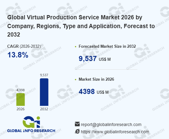 Global Info Research has recently published "Global Virtual Production Service Market 2026 by Manufacturers, Regions, Type and Application, Forecast to 2032". This report systematically analyzes the global Virtual Production Service market, providing multi-dimensional insights through type (Software、 Services), application (Broadcast、 Streaming Media、 Advertising、 Film and TV、 Others), regional markets, and major manufacturers (80six、 FuseFX、 cyd virtual studio、 NEP GROUP、 NantStudios、 PRG、 SHOWRUNNER、 Vū Technologies、 AOIN、 Mriya production、 DNEG、 Wētā FX、 Dark Matters、 Vero、 Mo-Sys、 Framestore、 Crew In Motion、 SoFlo Studios、 Lexhag、 Pixotope、 Tiltlabs、 Creative Technology、 Narwhal Studios、 Sony、 Solotech、 Fox), assessing the market status, trend evolution, and competitive landscape impact from 2021 to 2032.
