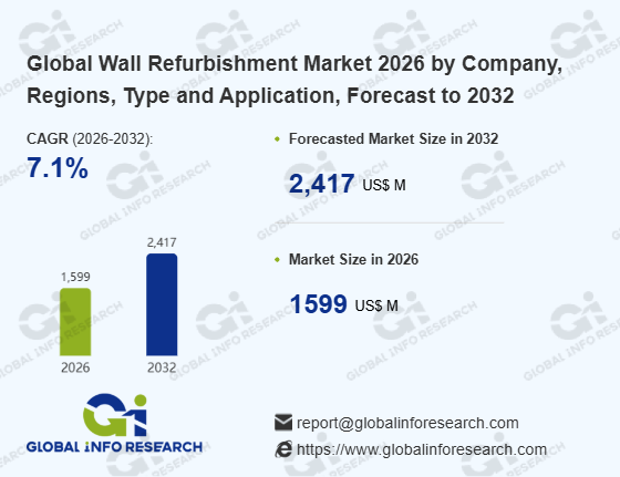 Global Info Research has recently published "Global Wall Refurbishment Market 2026 by Manufacturers, Regions, Type and Application, Forecast to 2032". This report systematically analyzes the current status, future trends (2021-2032), and competitive landscape of the global Wall Refurbishment market. It provides a quantitative analysis from the perspectives of type (Refurbishment Material、 Refurbishment Service), application (Commercial、 Residential), regional markets, and major manufacturers (Libang、 three trees、 more、 Guangdong Meitushi Building Materials Co., Ltd.、 Oriental Yuhong、 Guangzhou Huilin Building Materials Co., Ltd.、 Hangzhou Meihao Refresh Service Company、 Opie、 Gabel、 Guangzhou Gudi New Material Technology Co., Ltd.、 Demaison、 Zhongshan Borui Building Materials Co., Ltd.), comprehensively assessing market opportunities and competitive dynamics.