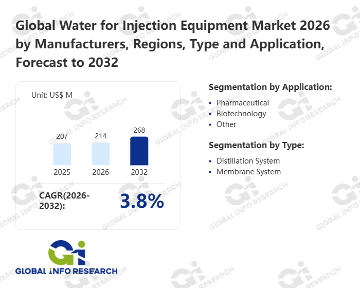 Global Info Research has recently published "Global Water for Injection Equipment Market 2026 by Manufacturers, Regions, Type and Application, Forecast to 2032". This report systematically analyzes the global Water for Injection Equipment market, providing multi-dimensional insights through type (Distillation System、 Membrane System), application (Pharmaceutical、 Biotechnology、 Other), regional markets, and major manufacturers (Stilmas、 BWT、 MECO、 STERIS、 Veolia Water Technologies、 BRAM-COR、 Syntegon、 Aqua-Chem、 Evoqua Water Technologies、 Truking Technology、 Shenzhen Carryclean、 Shanghai GenTech、 Puretech Process Systems、 Fabtech Technologies、 Organo、 NGK Filtech、 TSA Process Equipments、 Nihon Rosuiki Kogyo、 Nomura Micro Science、 Haedong Technology、 JUNGHYUN PLANT), assessing the market status, trend evolution, and competitive landscape impact from 2021 to 2032.