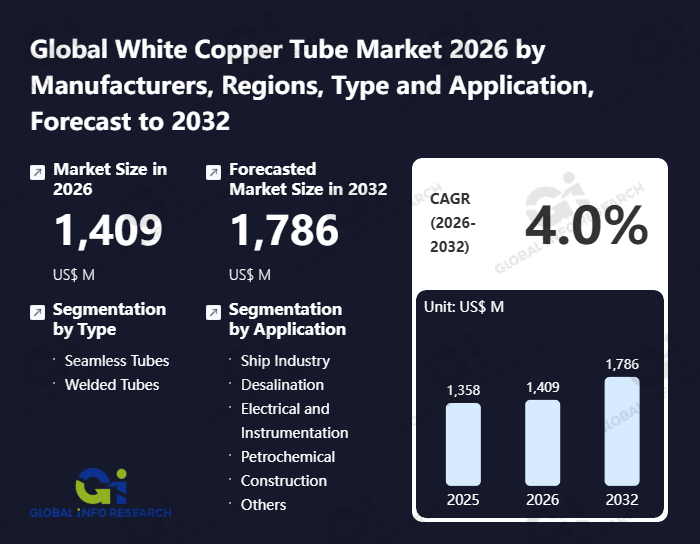 Global Info Research has recently published "Global White Copper Tube Market 2026 by Manufacturers, Regions, Type and Application, Forecast to 2032". This report systematically analyzes the current status, future trends (2021-2032), and competitive landscape of the global White Copper Tube market. It provides a quantitative analysis from the perspectives of type (Seamless Tubes、 Welded Tubes), application (Ship Industry、 Desalination、 Electrical and Instrumentation、 Petrochemical、 Construction、 Others), regional markets, and major manufacturers (Dragon Group International Ltd、 Hailiang Group Company Limited、 Jinchuan Group、 Furui Alloy、 Shanghai Shihang Copper&Nickel Pipe Fittings、 Ascent Loyal Copper、 Sunflex Metal Industries、 KMCT Corporation、 Aviva Metals、 Jintian Copper、 Global Metals、 Amari Precision Tubes、 Metal Gems、 Wieland Small Tube Products (WSTP)、 Precision Tube Company, LLC、 Ameritube), comprehensively assessing market opportunities and competitive dynamics.