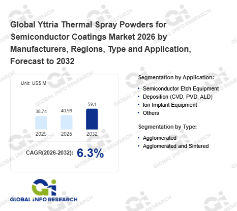 Global Info Research has recently published "Global Yttria Thermal Spray Powders for Semiconductor Coatings Market 2026 by Manufacturers, Regions, Type and Application, Forecast to 2032". This report systematically analyzes the global Yttria Thermal Spray Powders for Semiconductor Coatings market, providing multi-dimensional insights through type (Agglomerated、 Agglomerated and Sintered), application (Semiconductor Etch Equipment、 Deposition (CVD, PVD, ALD)、 Ion Implant Equipment、 Others), regional markets, and major manufacturers (FUJIMI INCORPORATED、 Entegris、 Hansol IONES、 SEWON HARDFACING CO.,LTD、 Saint-Gobain、 Oerlikon Balzers、 APS Materials, Inc.、 NGK (NTK CERATE)、 Hansol IONES、 FEMVIX CORP.、 CINOS、 Yeedex、 YMC Co., Ltd.、 Treibacher Industrie AG、 Nano Research Elements、 Coorstek、 Shin-Etsu Rare Earths), assessing the market status, trend evolution, and competitive landscape impact from 2021 to 2032.